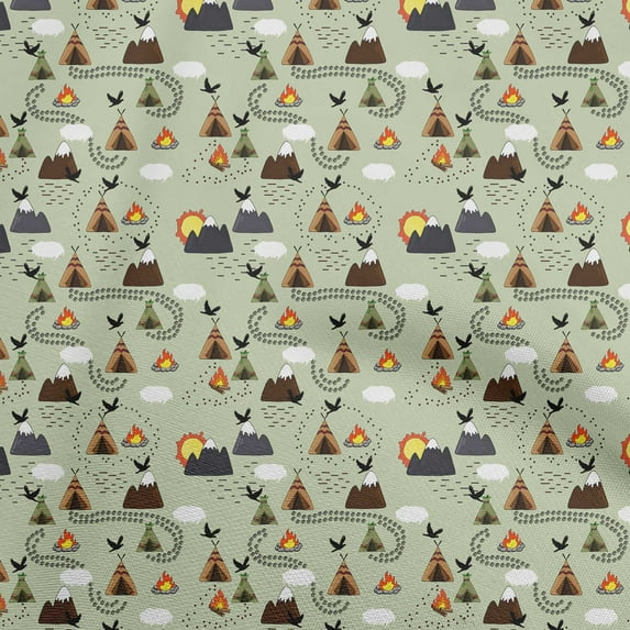 Hero image 0 of oneOone Cotton Cambric Light Green Fabric Kids Campfire Dress Material Fabric Print Fabric By The Yard 56 Inch Wide, 0 of 4
