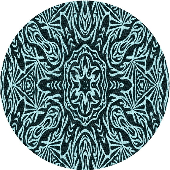 Ahgly Company Machine Washable Indoor Round Transitional Tiffany Blue Area Rugs, 4' Round