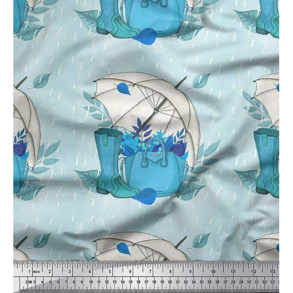 Soimoi Cotton Duck Fabric Umbrella,Boots & Handbag Women Decor Fabric Printed Yard 42 Inch Wide