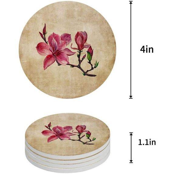 Hero image 0 of FMSHPON Pink Magnolia Flowers on Vintage Set of 8 Round Coaster for Drinks, Absorbent Ceramic Stone Coasters Cup Mat with Cork Base for Home Kitchen Room Coffee Table Bar Decor, 0 of 6