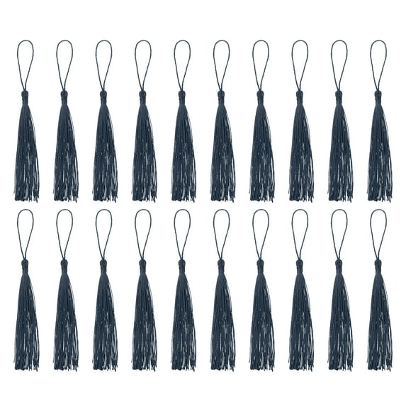 Uxcell 20Pack 5" Silky Bookmark Tassels with Loop for DIY Craft Accessory, Navy Blue