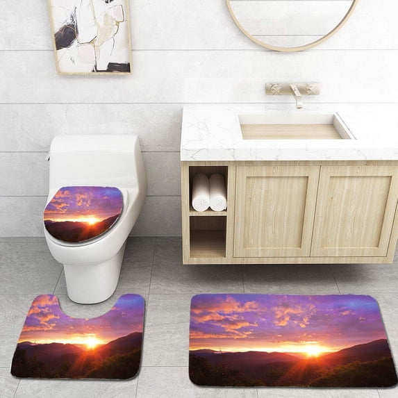 Hero image 0 of PUDMAD Beautiful Sunrise Over Mountains 3 Piece Bathroom Rugs Set Bath Rug Contour Mat and Toilet Lid Cover, 0 of 2