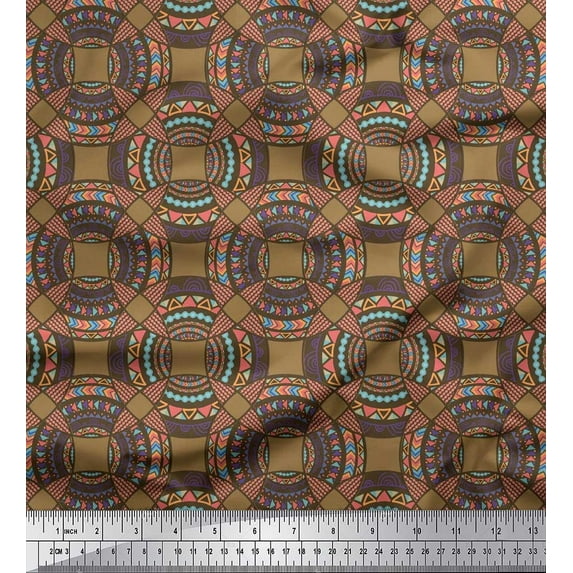Hero image 0 of Soimoi Brown Moss Georgette Fabric Mandala Geometric Print Fabric by the Yard 42 Inch Wide, 0 of 3