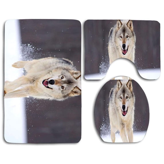 Hero image 0 of PUDMAD Running Wolf 3 Piece Bathroom Rugs Set Bath Rug Contour Mat and Toilet Lid Cover, 0 of 2