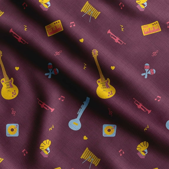 Hero image 0 of Soimoi Musical Instruments Print,Cotton Cambric, Quilting Fabric Sold by The Yard 42 Inch Wide, Medium Weight Cotton Fabric, SewingSupplies,Wine, 0 of 5