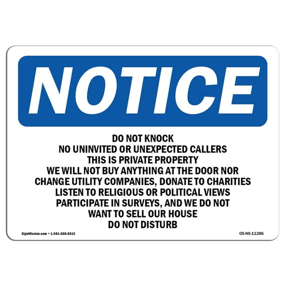SignMission OS-NS-D-710-L-11286 OSHA Notice Sign - Do Not Knock No Uninvited or Unexpected SignSignMission OS NS D 710 L 11286 OSHA Notice Sign Do Not Knock No Uninvited or Unexpected SignOSHA Notice Sign Do Not Knock No Uninvited Or Unexpected Decal Protect Your Business Construction Site Made in the USASignMission Notice Do Not Knock No Uninvited or Unexpected OSHA Aluminum SignOSHA Notice Signs Do Not Knock No Uninvited Or Unexpected Decal Protect Your Business Work Site Warehouse Made in the USAOSHA Notice Sign Knock Uninvited Unexpected Plastic Sign Protect Business Work Site Warehouse Shop Area Made USASignMission 12 x 18 in OSHA Notice Sign Do Not Knock No Uninvited or UnexpectedOSHA Notice Sign Knock Uninvited Unexpected Plastic Sign Protect Business Work Site Warehouse Shop Area Made USAOSHA Notice Signs Do Not Knock No Uninvited Or Unexpected Decal Protect Your Business Work Site Warehouse Made in the USAOSHA Notice Sign Knock Uninvited Unexpected Plastic Sign Protect Business Work Site Warehouse Shop Area Made USASignMission OS NS A 1824 L 11286 18 x 24 in OSHA Notice Sign Do Not Knock No Uninvited or Unexpected