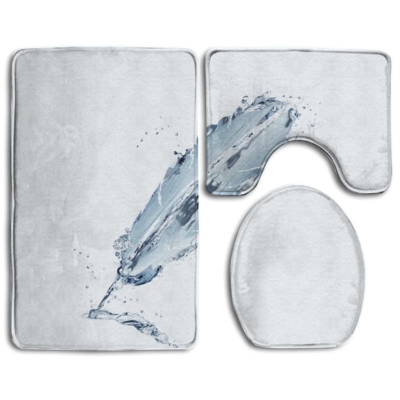 Hero image 0 of PUDMAD A Writing Feather Water 3 Piece Bathroom Rugs Set Bath Rug Contour Mat and Toilet Lid Cover, 0 of 2