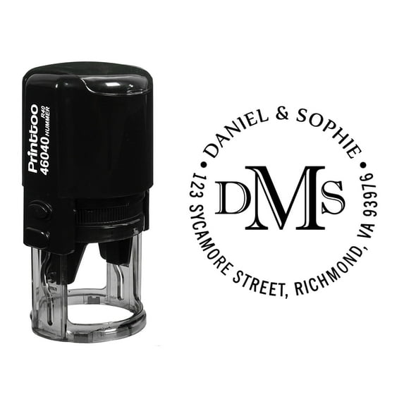 Hero image 0 of Printtoo Personalized Initial Monogram Self Inking Round Custom Address Wedding Invitation Rubber Stamp-Black, 0 of 4