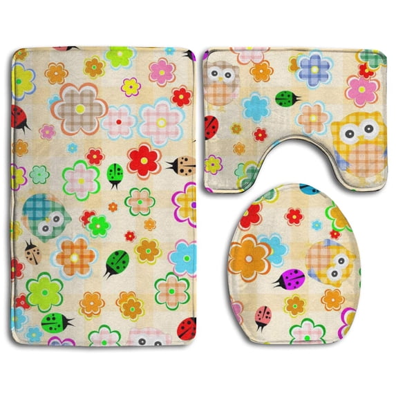 Hero image 0 of PUDMAD Flower and Owl 3 Piece Bathroom Rugs Set Bath Rug Contour Mat and Toilet Lid Cover, 0 of 2