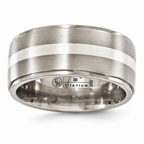 Edward Mirell Titanium Brush&Polished w/Sterling Silver 10mm BandEdward Mirell Titanium Brush Polished w Sterling Silver 10mm BandEdward Mirell Titanium Brush Polished w Sterling Silver 10mm BandEdward Mirell Titanium Brush Polished w Sterling Silver 10mm Band EMR186Edward Mirell Titanium Brushed Polished with Argentium Sterling Silver Inlay Flat 10mm Band EMR186Edward Mirell Titanium Brush Polished w Sterling Silver 10mm BandEdward Mirell Titanium Brushed Polished with Argentium Sterling Silver Inlay Flat 10mm Band EMR186
