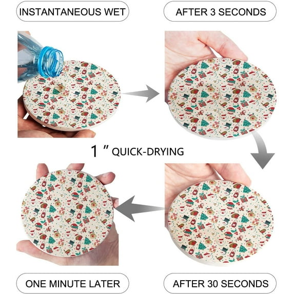 Hero image 0 of FMSHPON Merry Christmas Set of 6 Round Coaster for Drinks, Absorbent Ceramic Stone Coasters Cup Mat with Cork Base for Home Kitchen Room Coffee Table Bar Decor, 0 of 4