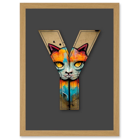 Hero image 0 of Letter Y Cat Face Multicoloured Decorative Graffiti Mural Alphabet Initial Stencil Artwork Framed Wall Art Print A4, 0 of 4