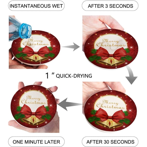 Hero image 0 of FMSHPON Merry Christmas Decor Xmas Bell Set of 8 Round Coaster for Drinks, Absorbent Ceramic Stone Coasters Cup Mat with Cork Base for Home Kitchen Room Coffee Table Bar Decor, 0 of 5