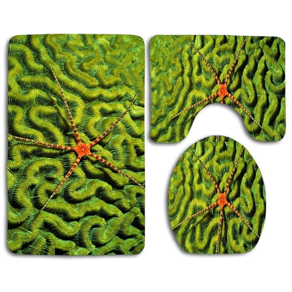 Hero image 0 of PUDMAD Brittlestar On Brain Coral 3 Piece Bathroom Rugs Set Bath Rug Contour Mat and Toilet Lid Cover, 0 of 2