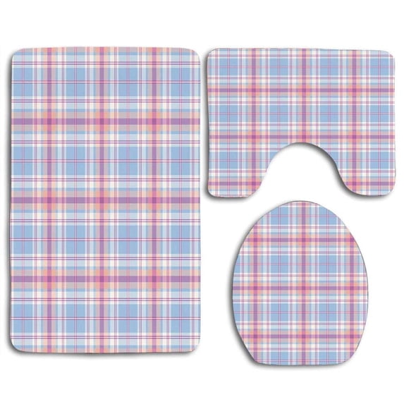 Hero image 0 of PUDMAD Old Fashioned Retro Style Classical Geometric Striped Plaid Inspired 3 Piece Bathroom Rugs Set Bath Rug Contour Mat and Toilet Lid Cover, 0 of 2