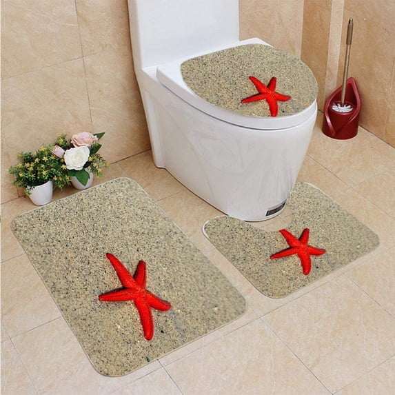 Hero image 0 of PUDMAD Red Starfish Beach 3 Piece Bathroom Rugs Set Bath Rug Contour Mat and Toilet Lid Cover, 0 of 2