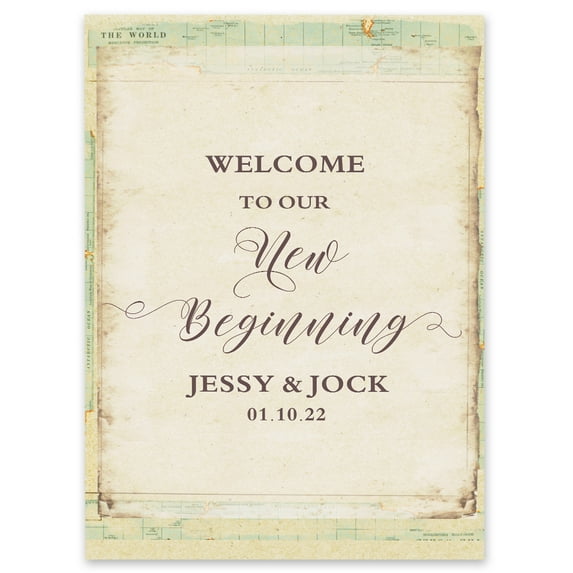 Hero image 0 of Darling Souvenir MADE WITH LOVE Personalized Welcome Sign/ Banner, Welcome To Our New Beginning Custom Vintage Handmade Paper Wedding, Engagement Party Sign - 18x12, 0 of 5