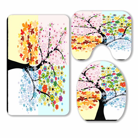 Hero image 0 of PKQWTM Four Season Tree 3 Piece Bathroom Rugs Set Bath Rug Contour Mat and Toilet Lid Cover, 0 of 2