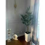 Standing at roughly 7 feet tall, it can effortlessly elevate any space on its own or paired with a complementary decor piece. The plant comes in a beautiful white tall planter, which elevates the stunning and realistic look of the tree. This faux olive tree is an excellent choice for people who want to enjoy the beauty and peace that real plants bring, without the hassle of maintenance.