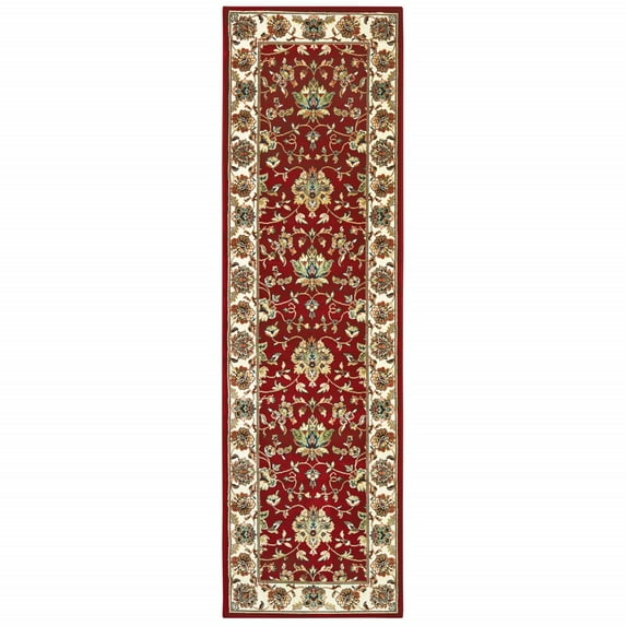 8' Red Ivory Machine Woven Floral Oriental Indoor Runner Rug