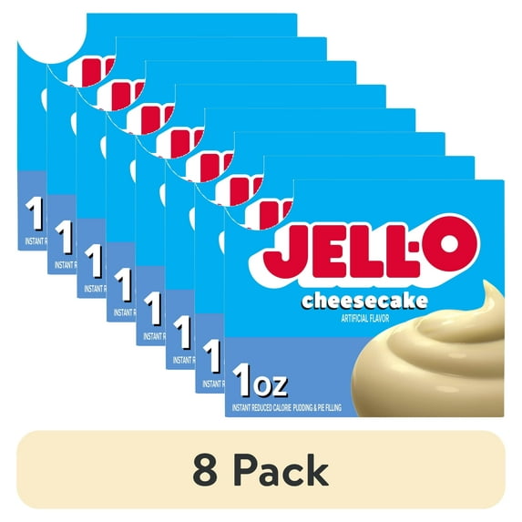 - 8-pack of Jell-O Cheesecake Artificially Flavored Zero Sugar Instant Reduced Calorie Pudding & Pie Filling Mix, 1 oz. Box