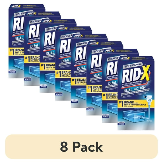 - 8-pack of Rid-X Professional Septic Tank Treatment Powder, Dual Action, 1 Month Supply