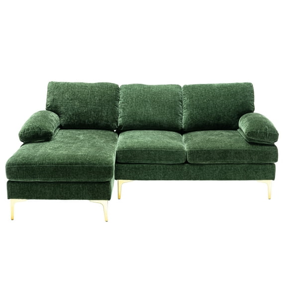 Hero image 0 of 81 Inch L-shaped Accent Sofa Set with Padded Back and Armrest, Upholstered Sofa Couch with Chaise and Metal Legs, Corner Sleeper Couch for Living Room, Green, 0 of 7