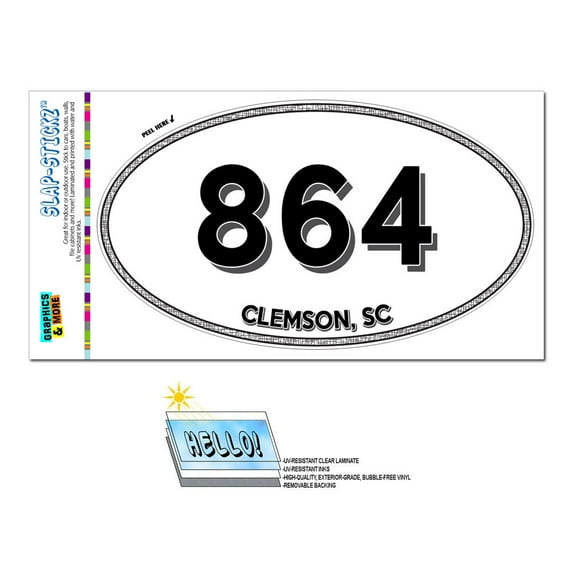 Hero image 0 of 864 - Clemson, SC - South Carolina - Oval Area Code Sticker, 0 of 1