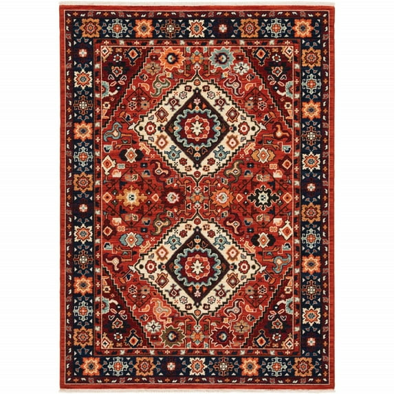 9' x 12' Red Blue Machine Woven Oriental Indoor Area Rug
