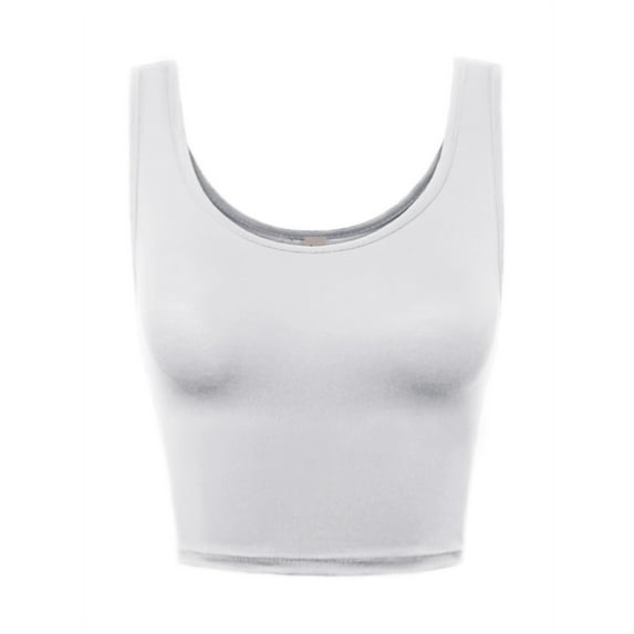 A2Y Women's Fitted Rayon Scoop Neck Sleeveless Crop Tank Top White M