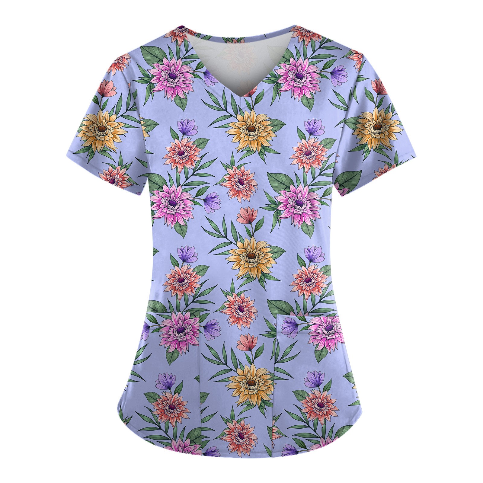 Hero image 0 of ADSSDQ Women's V-Neck Scrub Top,Floral Print Nursing Scrubs for Women,Summer Short Sleeve Workwear Nurse Uniforms Scrub Tops with Pockets Light Purple 2XL, 0 of 3