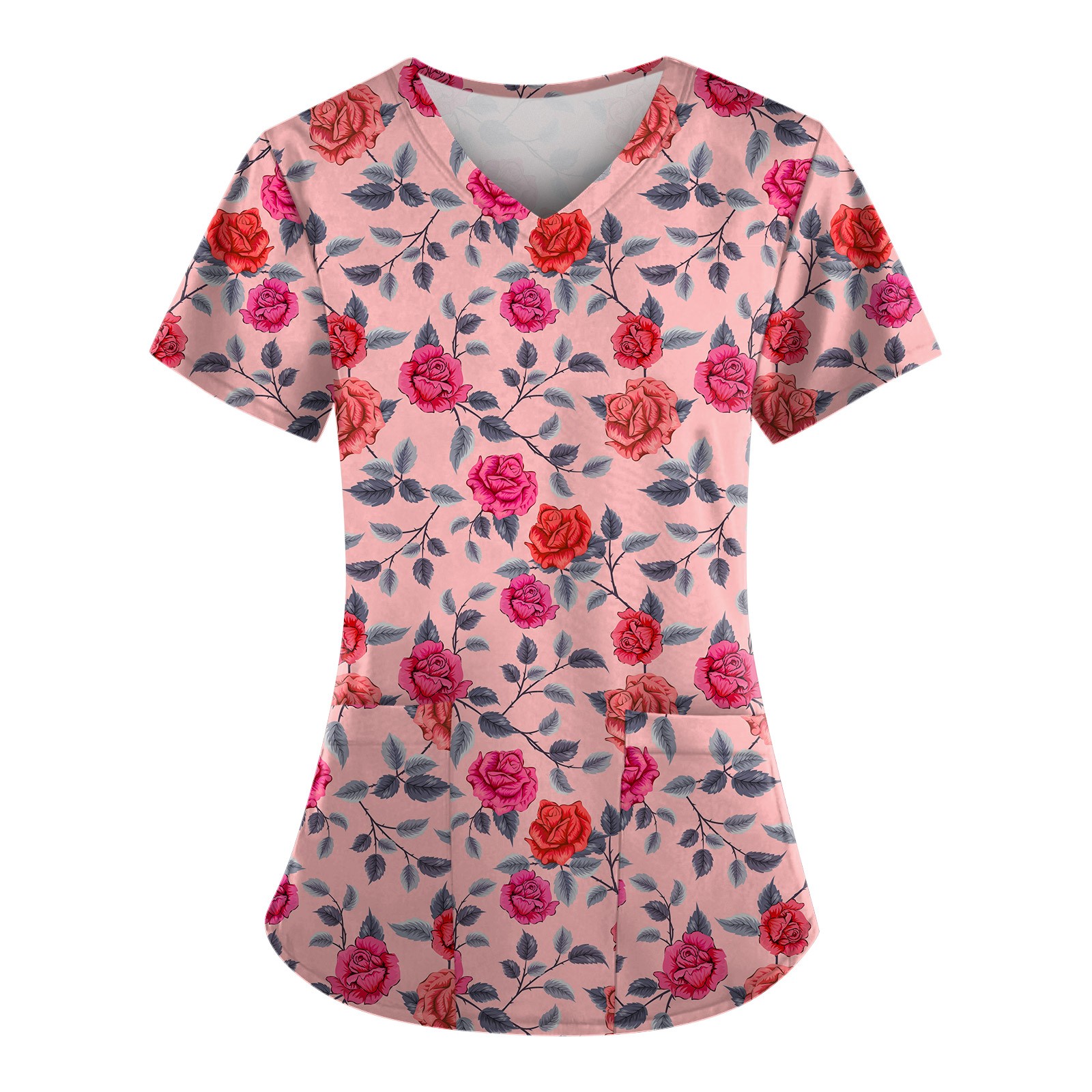 Hero image 0 of ADSSDQ Women's V-Neck Scrub Top,Floral Print Nursing Scrubs for Women,Summer Short Sleeve Workwear Nurse Uniforms Scrub Tops with Pockets Pink 5XL, 0 of 3