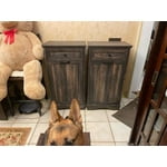 - Multi-functional Design: The trash cabinet is not only a practical kitchen trash can but it can also be used as a laundry basket or recycling bin, as well as a pet food bin. The drawers provide a convenient storage space for small sundries.