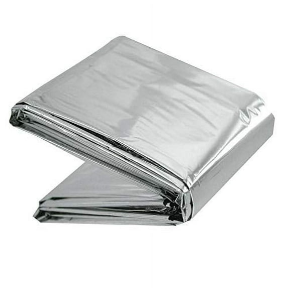 Silver Emergency Mylar Thermal Blanket, Foil Rescue Space Blanket - For Outdoors, Survival, Hiking, Natural Disasters, First Aid, Marathons + MoreBlocks Rain, Snow, Heat, Wind + ColdAsatechmed's premium aluminized dual sided foil thermal blankets are able to retain up to 90% of body heat and are perfect for outdoor emergency survival situations.An Outdoors Enthusiasts Must Have:These blankets are designed to serve as many different forms of protection including ground cover, blanket, sleeping bag, shelter, first aid, survival signaling or to prevent hypothermia in extreme weather conditions.Blankets are waterproof, windproof, and moisture-proof in order to keep you dry in damp, wet, rainy, cold environments.They can also be reversed to keep your body temperature stable in an emergency under the hot sun by deflecting the heat when used as a tent or shelter.Designed To Withstand The Elements:Made of durable insulating mylar material designed by NASA for space exploration, ideal for everyday emergencies on earth.Perfect for hiking, camping, outdoors, backpacking, travel, natural disaster + bug out bags.An essential for car accident kits, hiking packs, first aid kits, and home preparedness kits.Compact And Convenient To Carry:Lightweight and easy to store - Measures a generous 55" x 84" and made of trusted military-grade 12-micron aluminized polyethylene mylarKeep one in your backpack, home, office, boat, car, hunting bag, + more to keep yourself and others prepared to survive in any type of emergency situation.(Emergency Blanket,Thermal Blanket,Mylar Blanket,Bug Out Bag Supplies,Emergency Kit, Rain Ponchos,Survival Kit,Camping Blanket.)