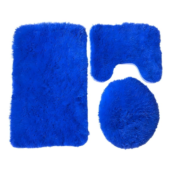 - Blue Color: The set includes three blue bathroom rugs and mats.