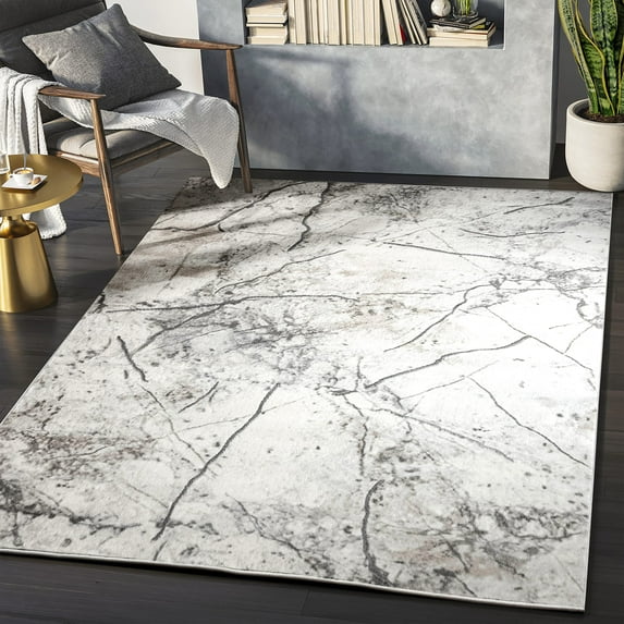Abani Luna Collection Floor Tile 5' x 8' Cream Grey Modern Area Rug