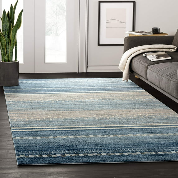 Abani Mesa Collection Southwestern Blue Striped 5' x 8' Area Rug