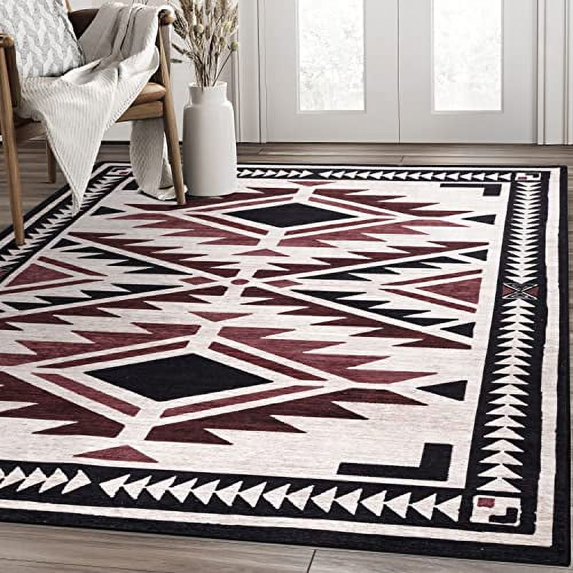 Abani Molana Collection Southwestern Black Red Machine Washable Area Rug, 6' x 9'Abani Molana Collection Southwestern Black Red Machine Washable Area Rug 6 x 9