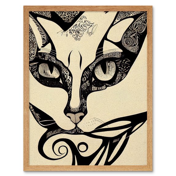 Hero image 0 of Abstract Boho Portrait Cat Sketch Cat Tribal Intricate Art Print Framed Poster Wall Decor 12x16 inch, 0 of 5