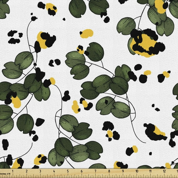 Hero image 0 of Abstract Fabric by the Yard, Animal Skin Inspired Spots and Plants, Decorative Upholstery Fabric for Chairs & Home Accents, Hunter Green Yellow by Ambesonne, 0 of 5