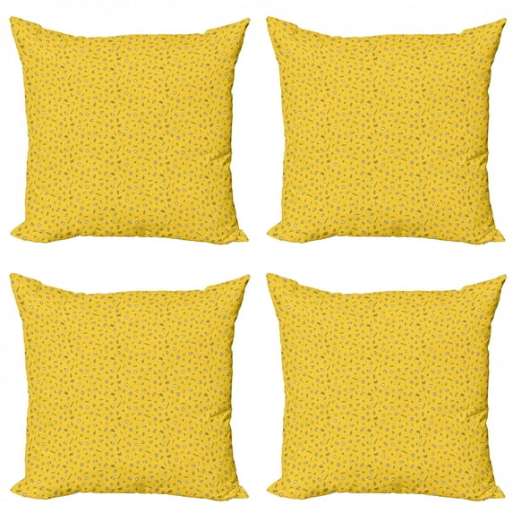 Hero image 0 of Abstract Geometry Throw Pillow Cushion Case Pack of 4, Repetitive Hearts Squares Cylinder Motifs Illustration, Modern Accent Double-Sided Print, 4 Sizes, Mustard Charcoal Grey, by Ambesonne, 0 of 2