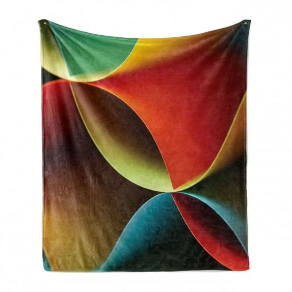 Hero image 0 of Abstract Soft Flannel Fleece Throw Blanket, Graphic Curved Origami Design with Colored Details Work of Art, Cozy Plush for Indoor and Outdoor Use, 70" x 90", Orange White, by Ambesonne, 0 of 6