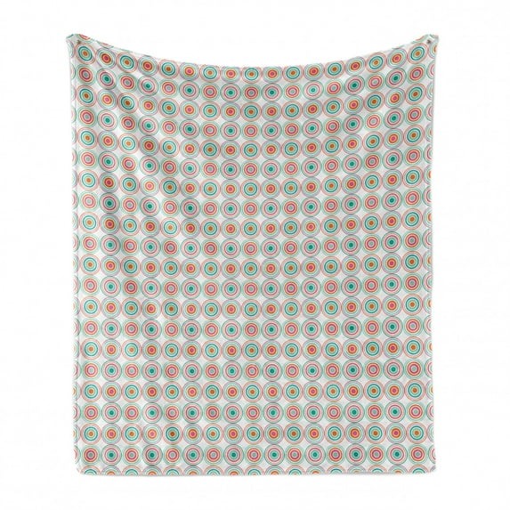 Hero image 0 of Abstract Soft Flannel Fleece Throw Blanket, Retro Style Geometric Circler with Inner Rings Round Oval Hipster, Cozy Plush for Indoor and Outdoor Use, 50" x 60", Seafoam Orange and Pink, by Ambesonne, 0 of 5