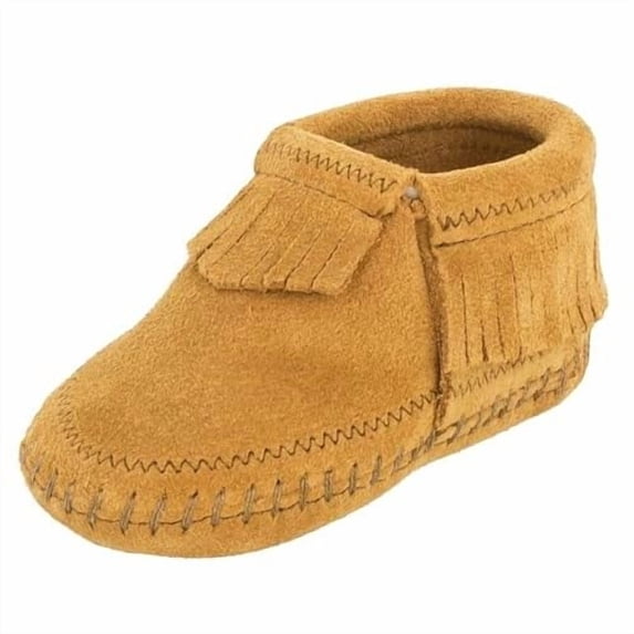 Minnetonka Riley Moccasin Booties (Infant/Toddler), Taupe, 0 M US Infant