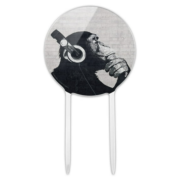 - CAKE TOPPER - Headphone Chimp Monkey Wall Cake topper will help you show off your amazing work! Bring the finishing touch to your culinary creation with this cake topper.