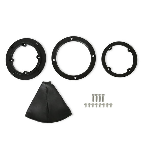 - Rigid Bezel: A billet 3-piece rigid shifter bezel securely holds the leather shift boot in place, utilizing remaining holes for attachment to the tunnel or console.