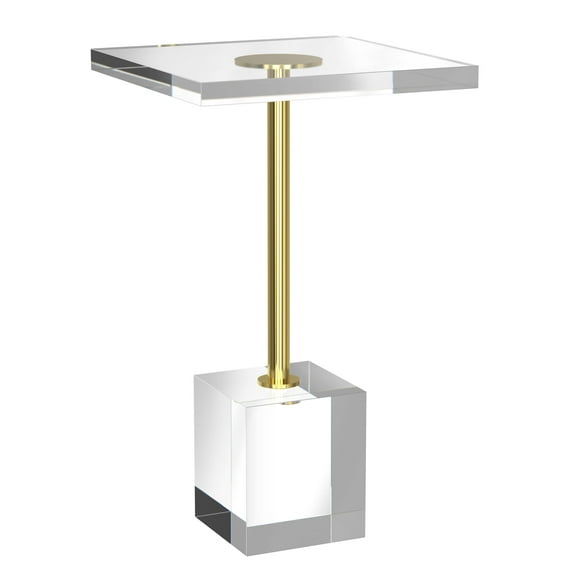 This clear acrylic side table is designed to be both stylish and functional, boasting a sleek and contemporary look that is sure to impress. With its clear acrylic tabletop, you get the look of a clear glass table without the heavy weight and potential dangers of broken glass. At 13" x 13", this acrylic end table is the perfect size for use as a bedside table, living room end table, or a little side table in any room of the house. Its compact size makes it ideal for small spaces, and its stain-resistant surface ensures that you don't have to worry about spills or stains. Simply wipe off and forget! The table is also lightweight, making it easily moveable until you find the perfect spot for it in your home. The clear acrylic side table is supported by a polished nickel pole that adds a touch of elegance and sophistication to the piece. Its small pedestal table design ensures that it won't take up too much space, while still providing a stable and sturdy surface for your décor, drinks, or other items. Whether you're looking for a martini table for small spaces, a drink table pedestal, or a clear end table to complete your décor, our Clear Acrylic Side Table is the perfect choice to finish off the decor in your home.