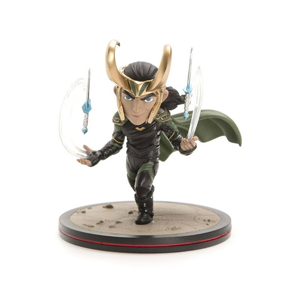 From Quantum Mechanix. Surprise! Loki from Marvel's Thor: Ragnarok is now a q-fig collectible figure! design features Loki, complete with his signature knives captured in mid-flip, as he advances forward into combat. This PVC figure stands 3 1/4" tall and comes with a diorama base.