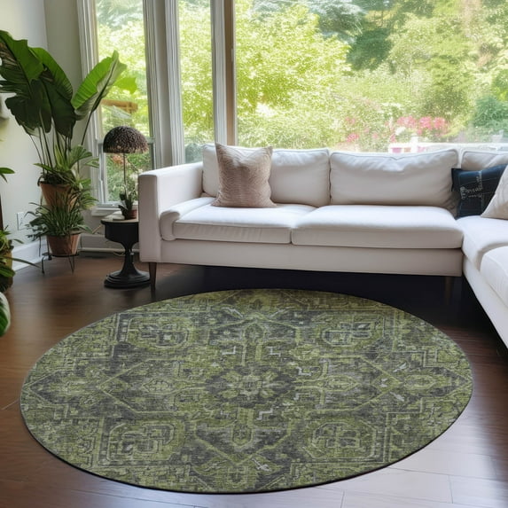 Addison Rugs Chantille Indoor/Outdoor Traditional Oriental Green Washable Round Rug, 8' x 8'