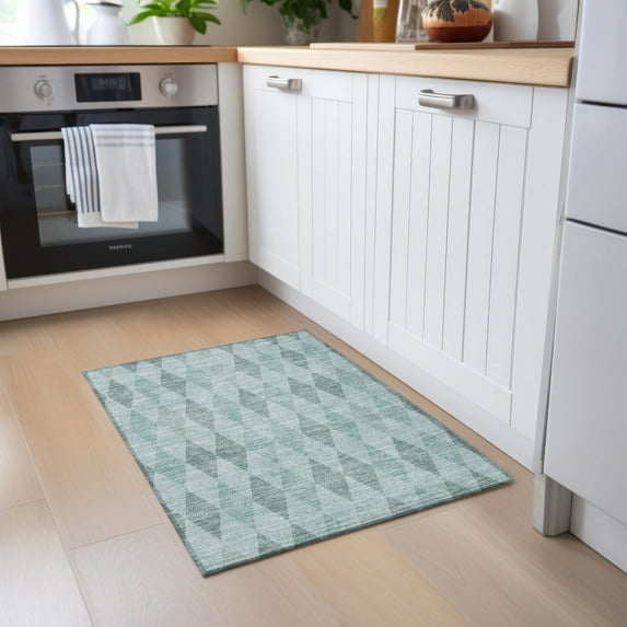 Addison Rugs Chantille Indoor/Outdoor Transitional Geometric Teal Washable Rectangle Rug, 1'8" x 2'6"